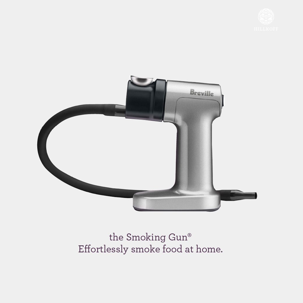 8. Place remaining maple syrup in a small pitcher. Cover container with plastic wrap. Add hickory wood chips to the burn chamber of the Breville Smoking Gun. Place hose under the plastic wrap with the opening sitting above the liquid. Turn smoking gun on to HIGH SPEED and ignite wood chips. Switch to LOW SPEED and smoke for a few seconds until the pitcher is filled with a dense smoke. Remove hose and reseal plastic wrap. Let infuse for 3 minutes, occasionally swirling the syrup.